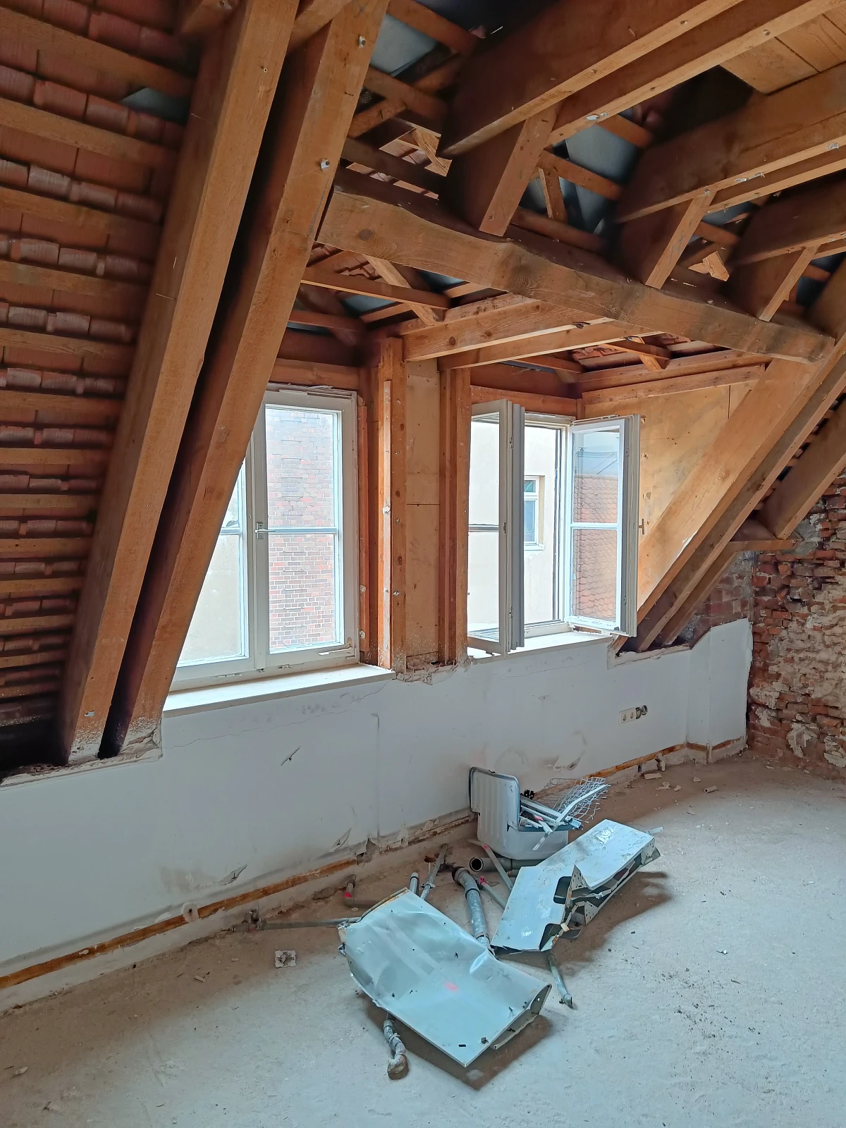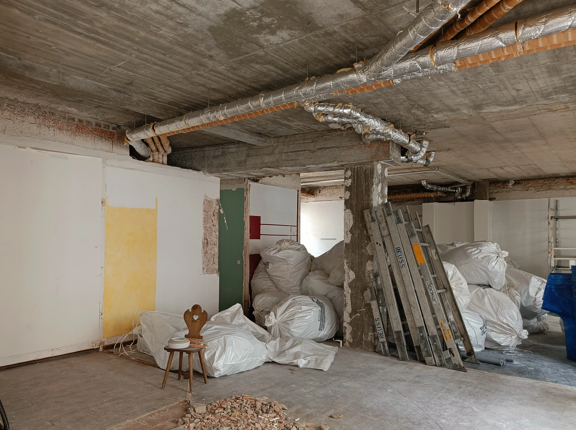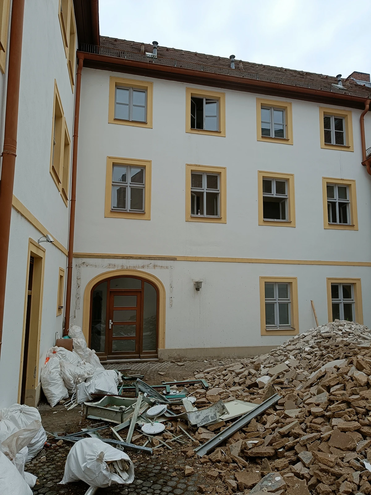 Im Rahmen der aktuellen Sanierung entstehen aus zwei ehemaligen Ladeneinheiten im Erdgeschoss zusätzliche Wohneinheiten. Aktuell laufen Rückbauarbeiten im Inneren des Gebäudes: Leitungen, Nasszellen und Oberflächen aus dem ersten Umbau sowie einer Sanierung in den 90er-Jahren werden entfernt. Der Dachstuhl bleibt erhalten und wird später energetisch saniert.