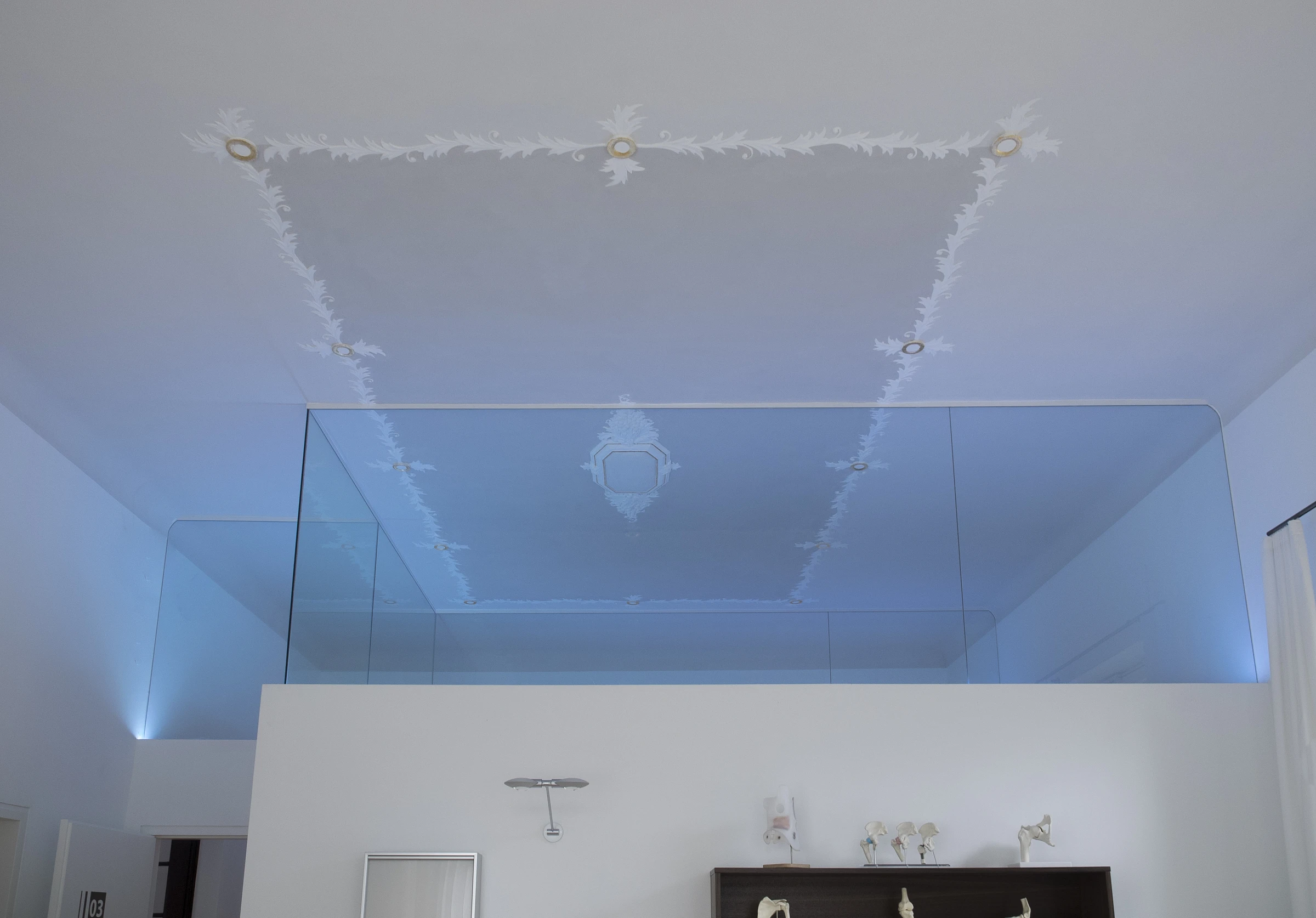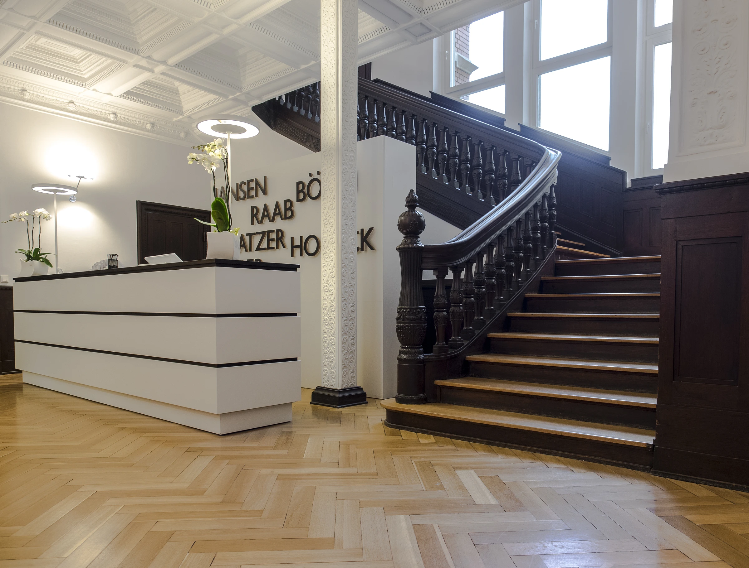 Im Inneren des Gebäudes sind Parkettböden, teilweise auch Stuckdecken und Wandvertäfelungen aus der Bauzeit erhalten.