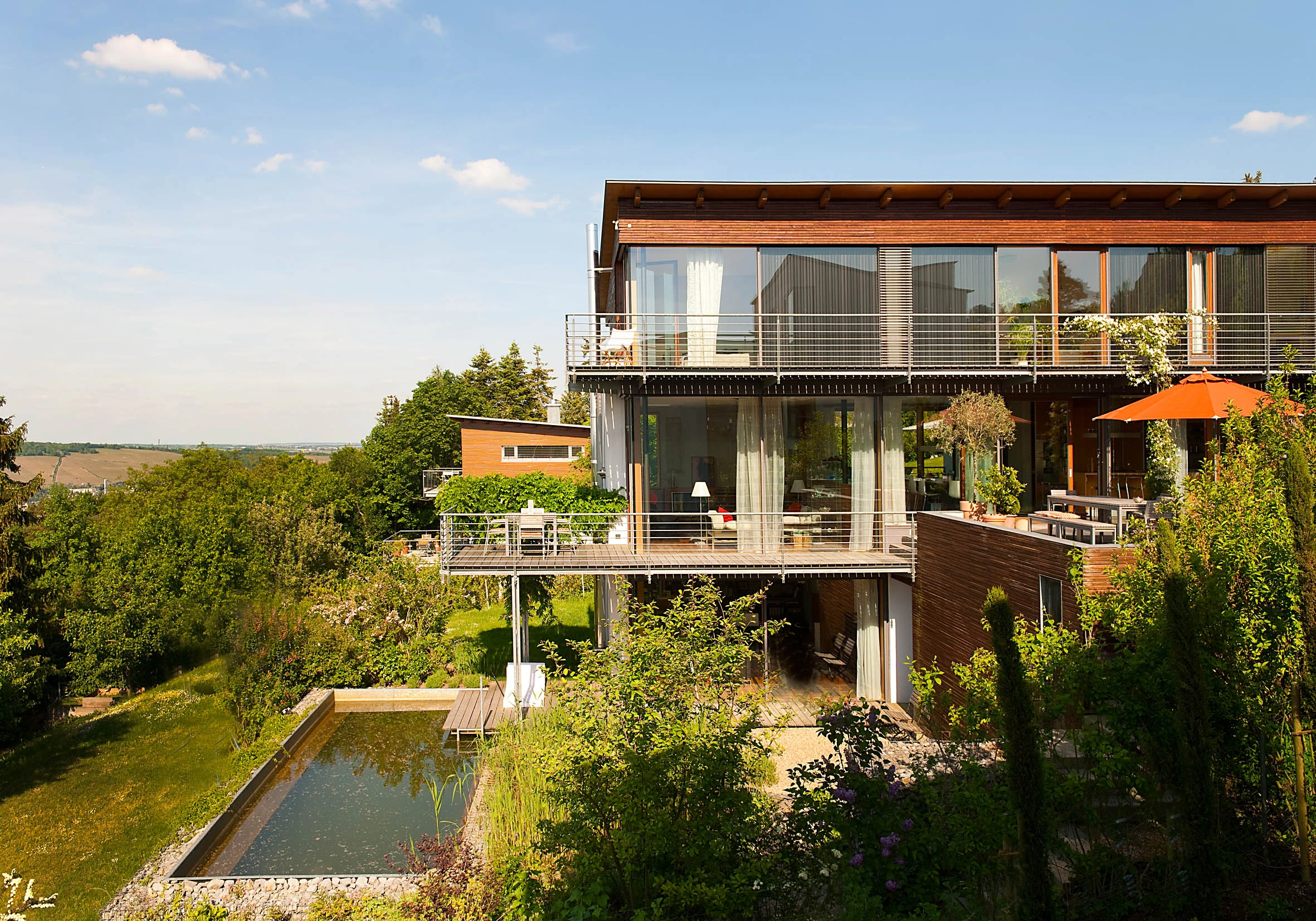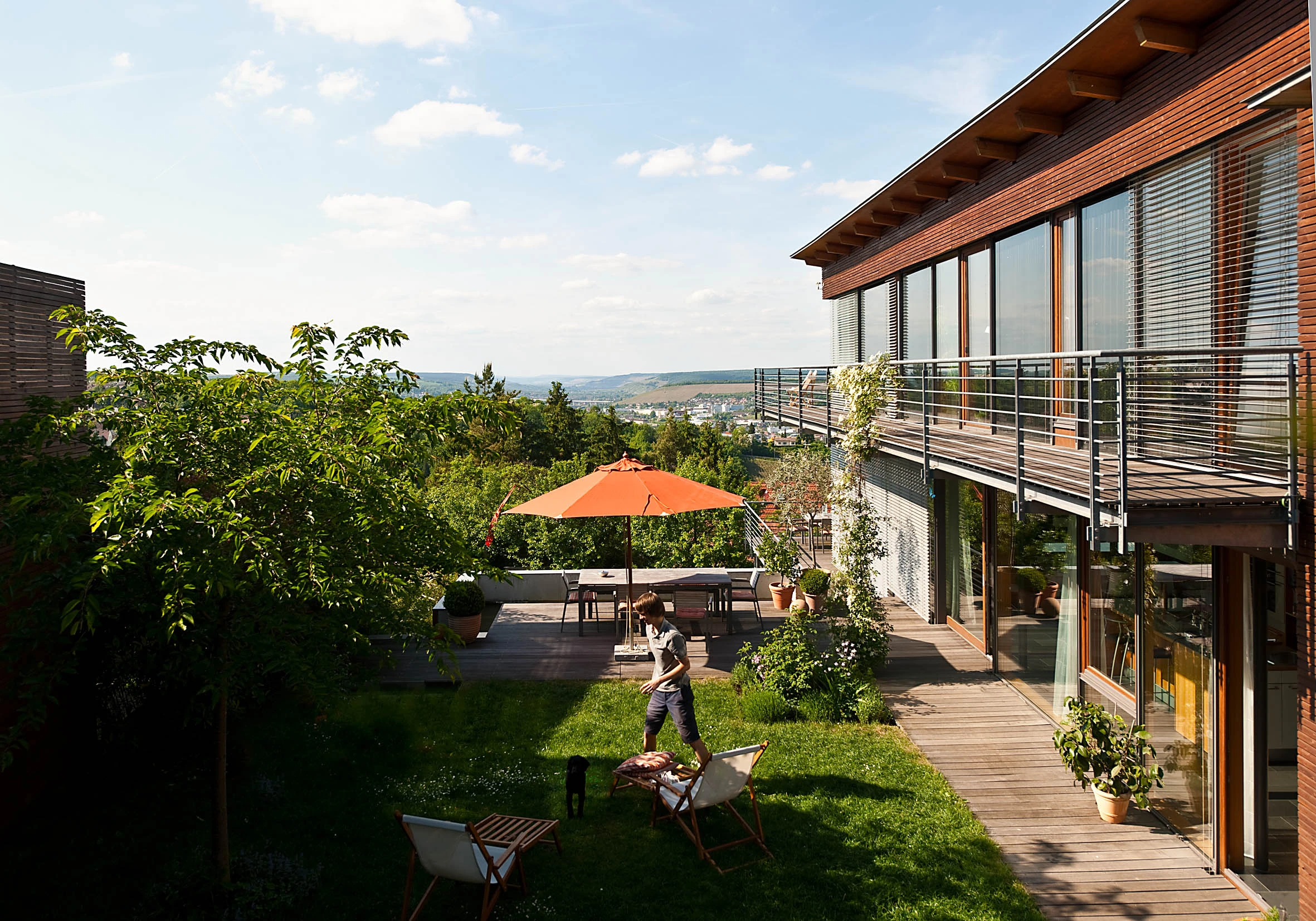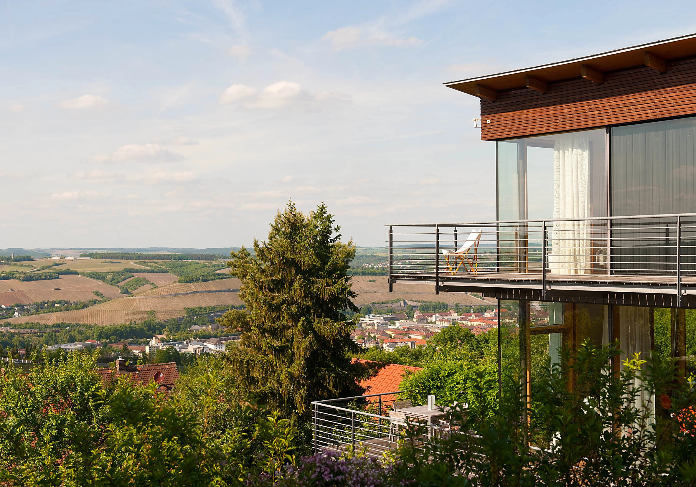 Das Wohnhaus an der Frankenwarte inszeniert die Ausblicke ins Maintal und auf den Würzburger Stein.