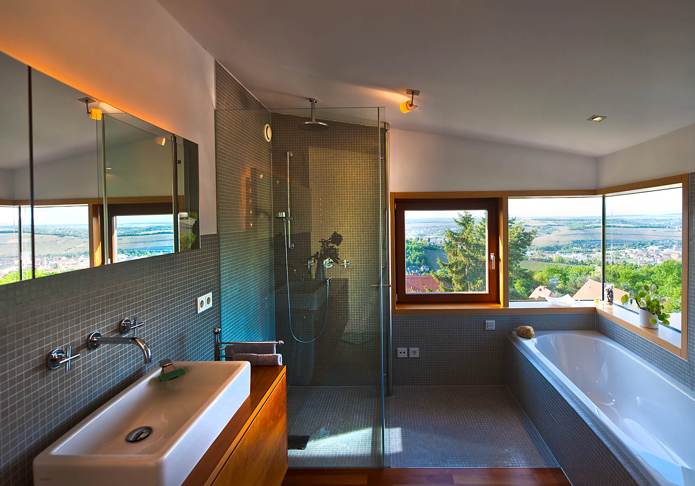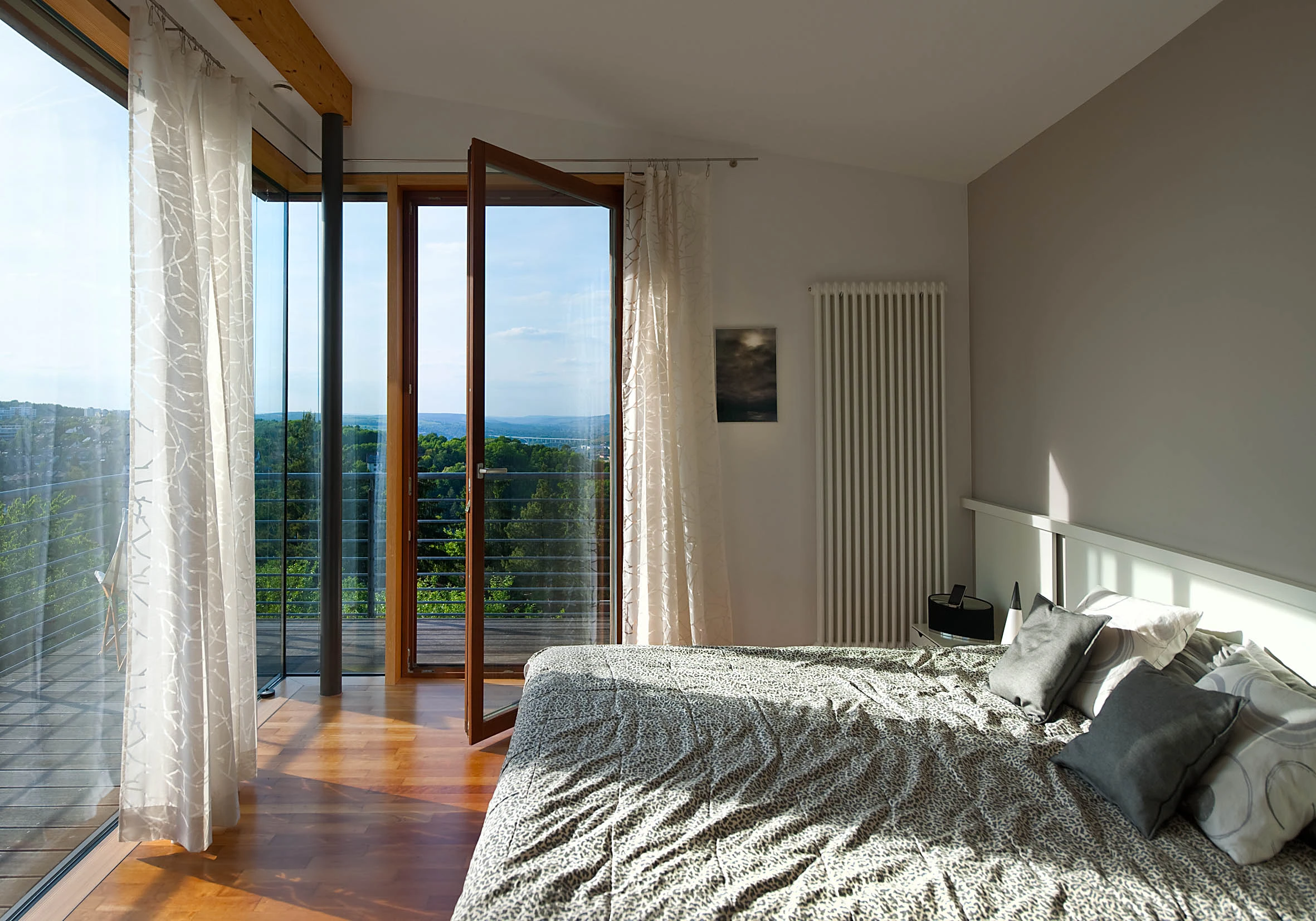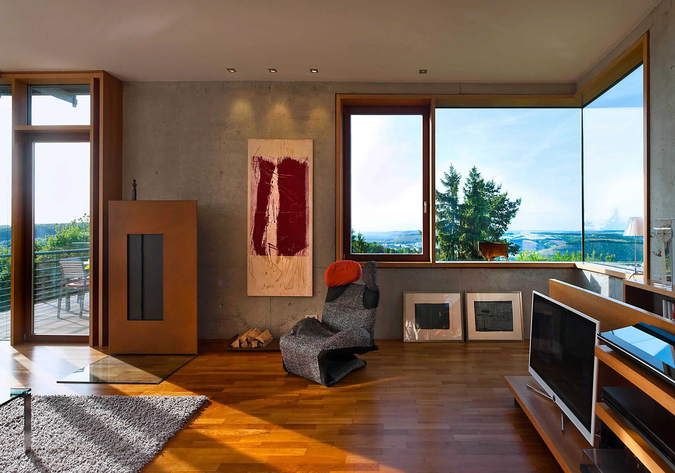 Das Wohnhaus an der Frankenwarte inszeniert die Ausblicke ins Maintal und auf den Würzburger Stein.