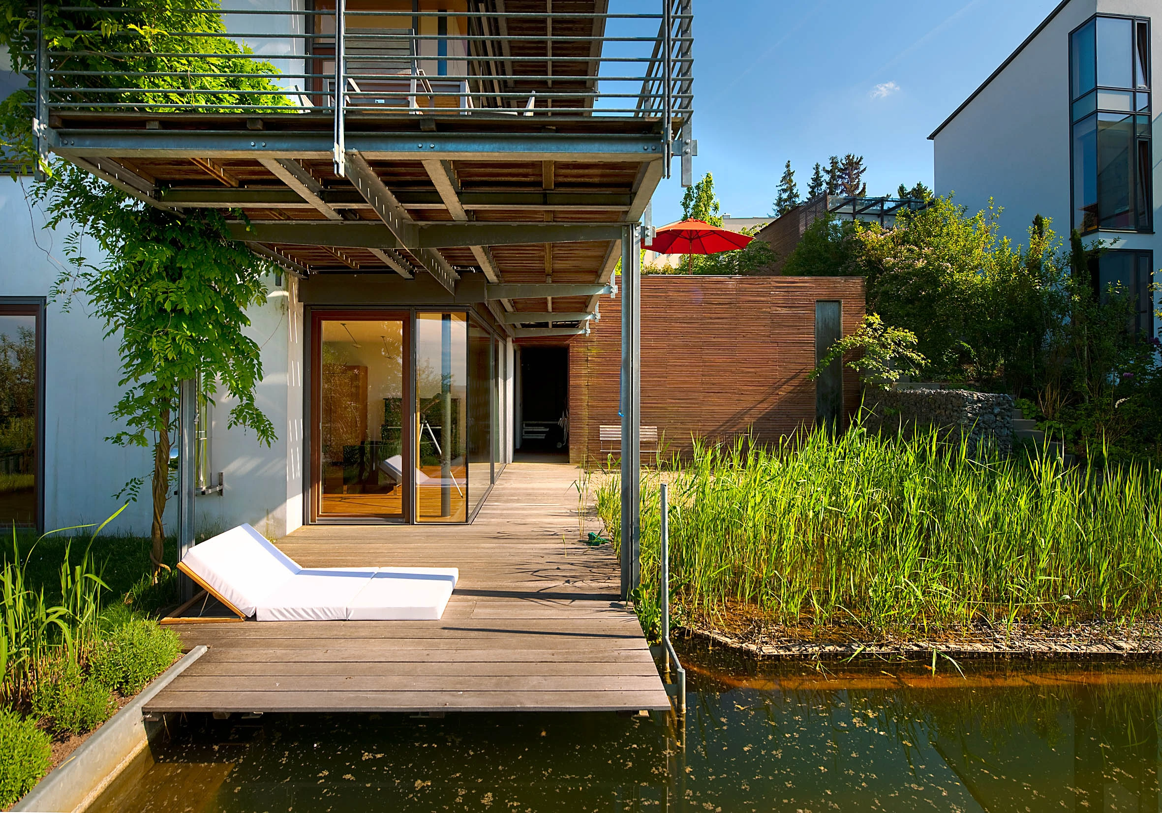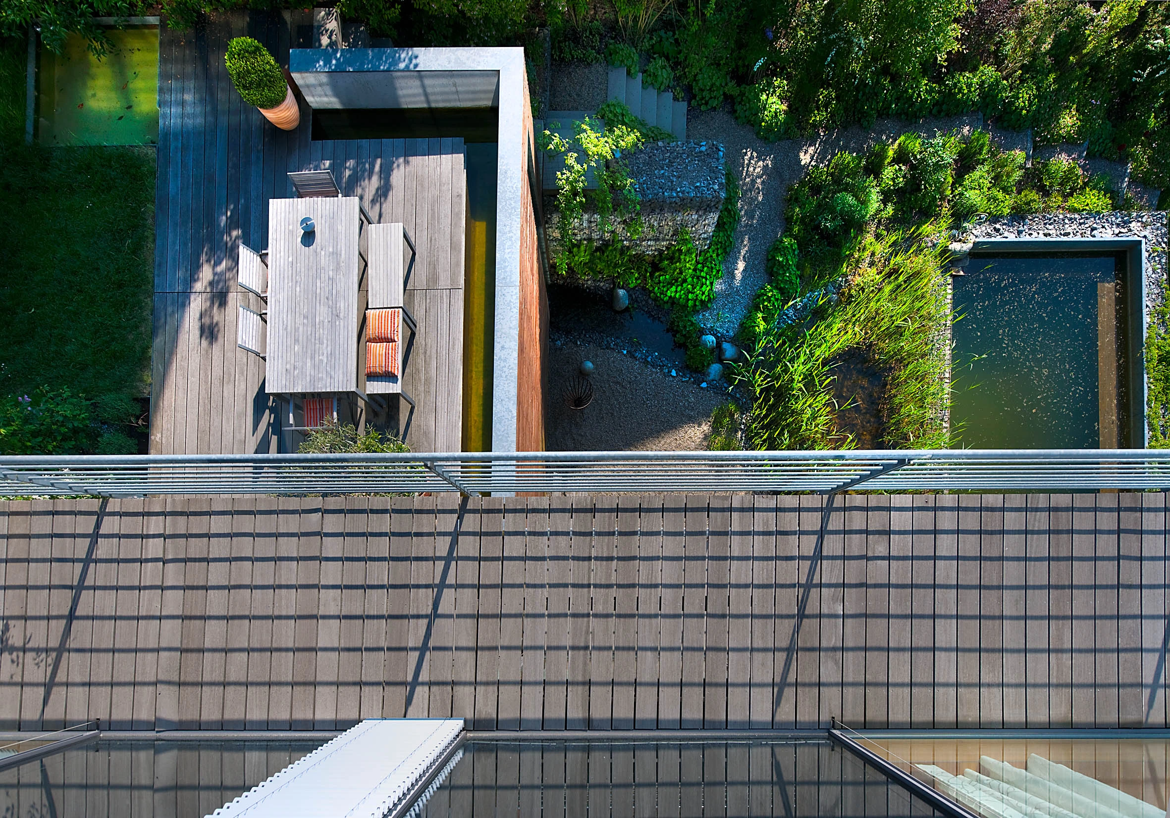 Durch geschickte Ausnutzung der Steilhanglage verbindet sich in jedem Geschoss der Innenraum mit dem Außenbereich.
