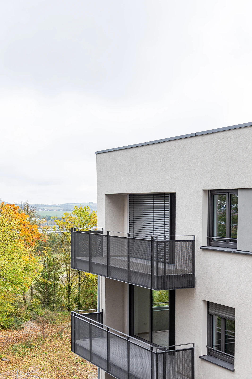 Die monolithische Bauweise aus perlitgefüllten Leichtziegeln sorgt für eine langlebige, wartungsarme Fassade ohne die Schwachstellen eines Wärmedämm-Verbundsystems. Kalkinnenputz mit Kalkglätte und mineralischer Außenputz schaffen eine bauphysikalisch, wohnphysiologisch und ökologisch hochwertige Gebäudehülle. Natürliche Erdtöne kombiniert mit umbragrauen Fenstern und Balkonen verleihen den Bauten ein elegantes Erscheinungsbild und fügen Sie harmonisch in den Landschaftsraum ein.