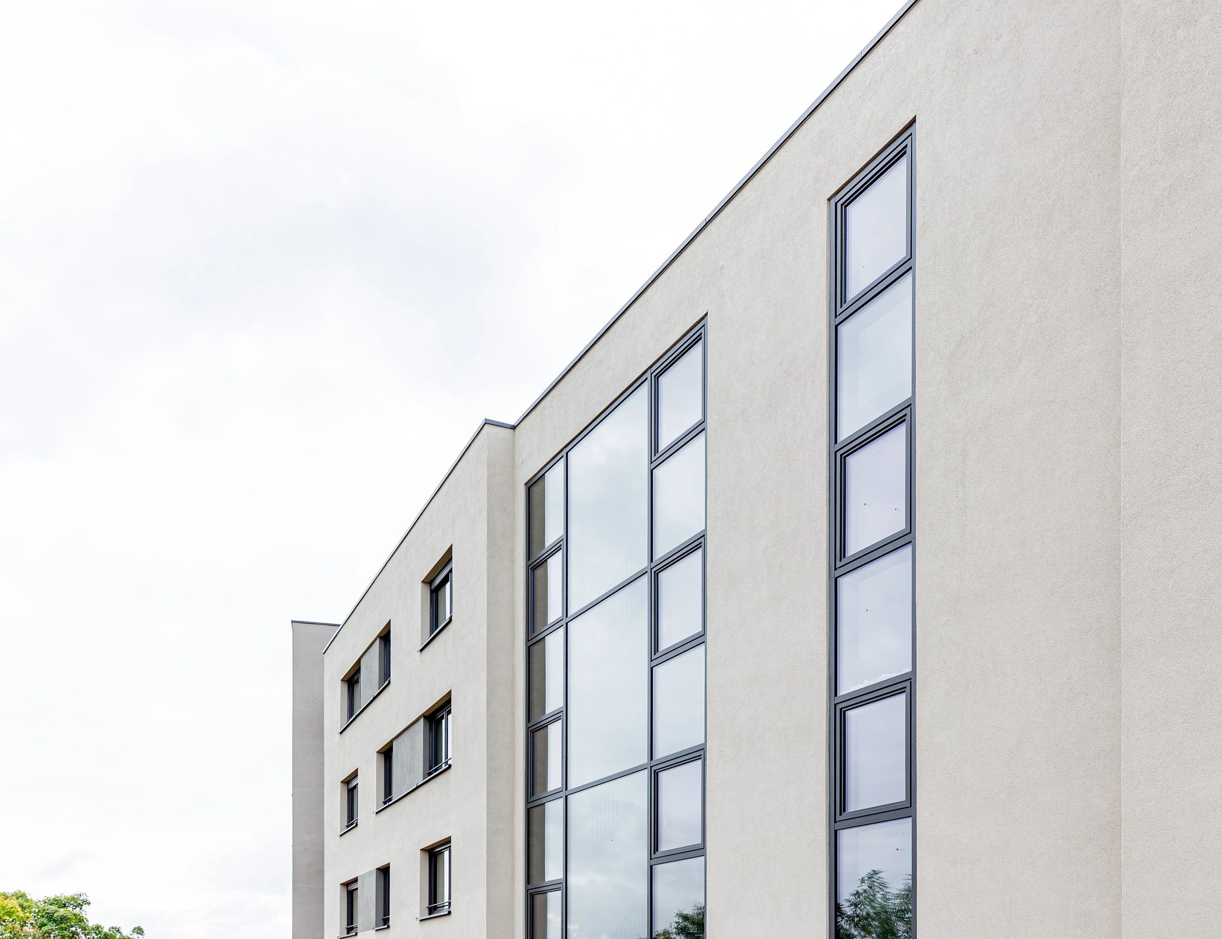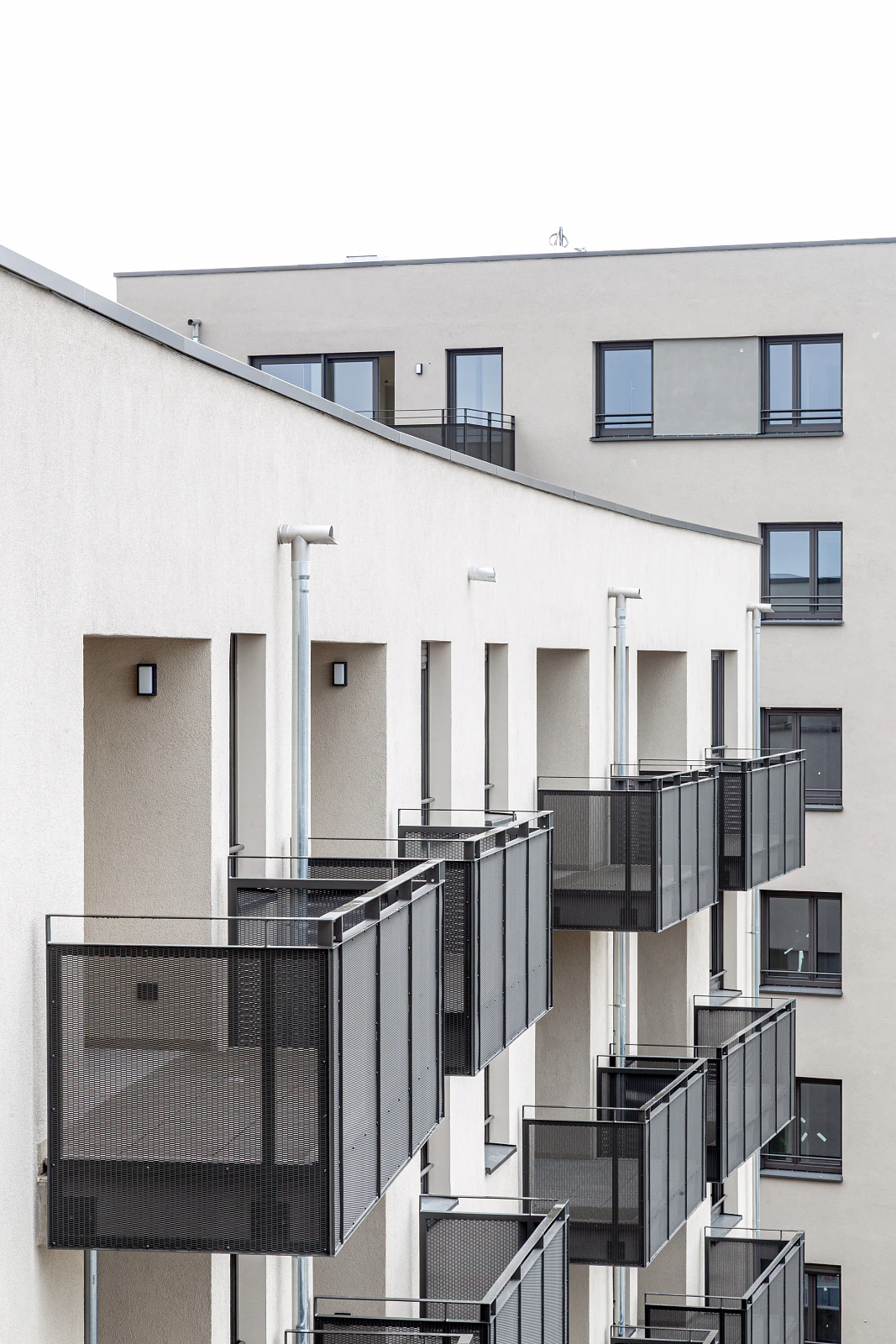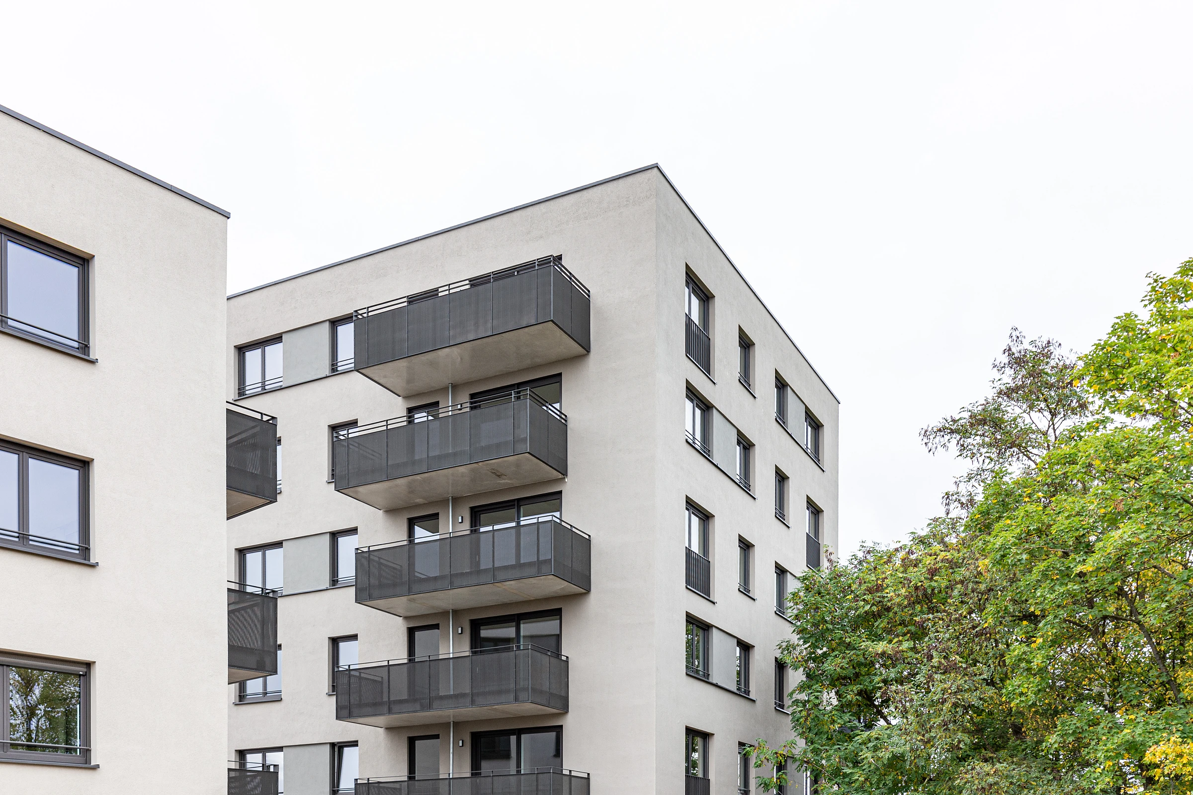 Drei Bauherrn teilen sich das Projekt, wobei das St. Bruno-Werk mit vier Häusern und 79 Wohnungen den größten Anteil hat. Die Stellplätze für PKW und Fahrräder liegen nicht einsehbar im Untergeschoss und sind über Rampen erschlossen.