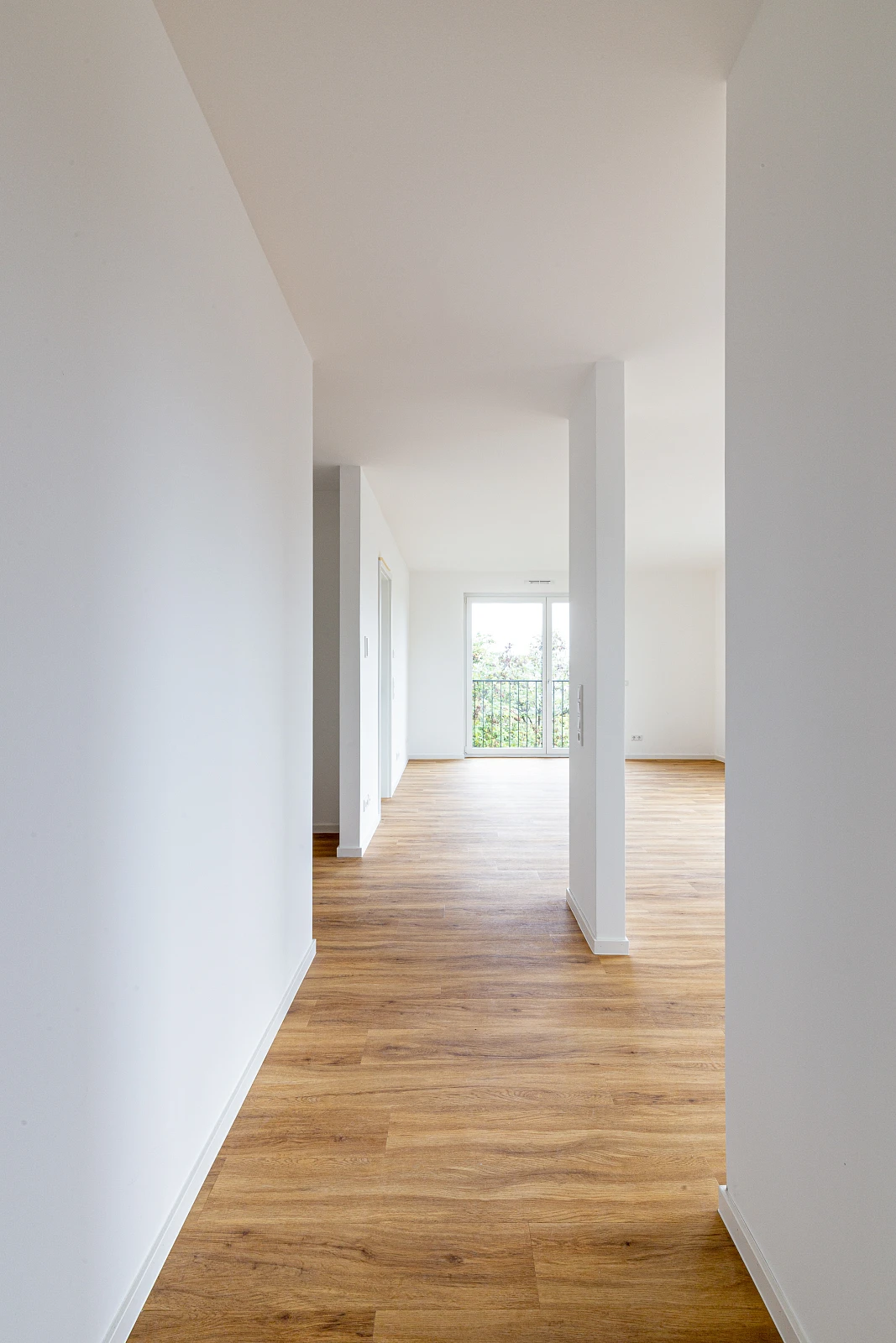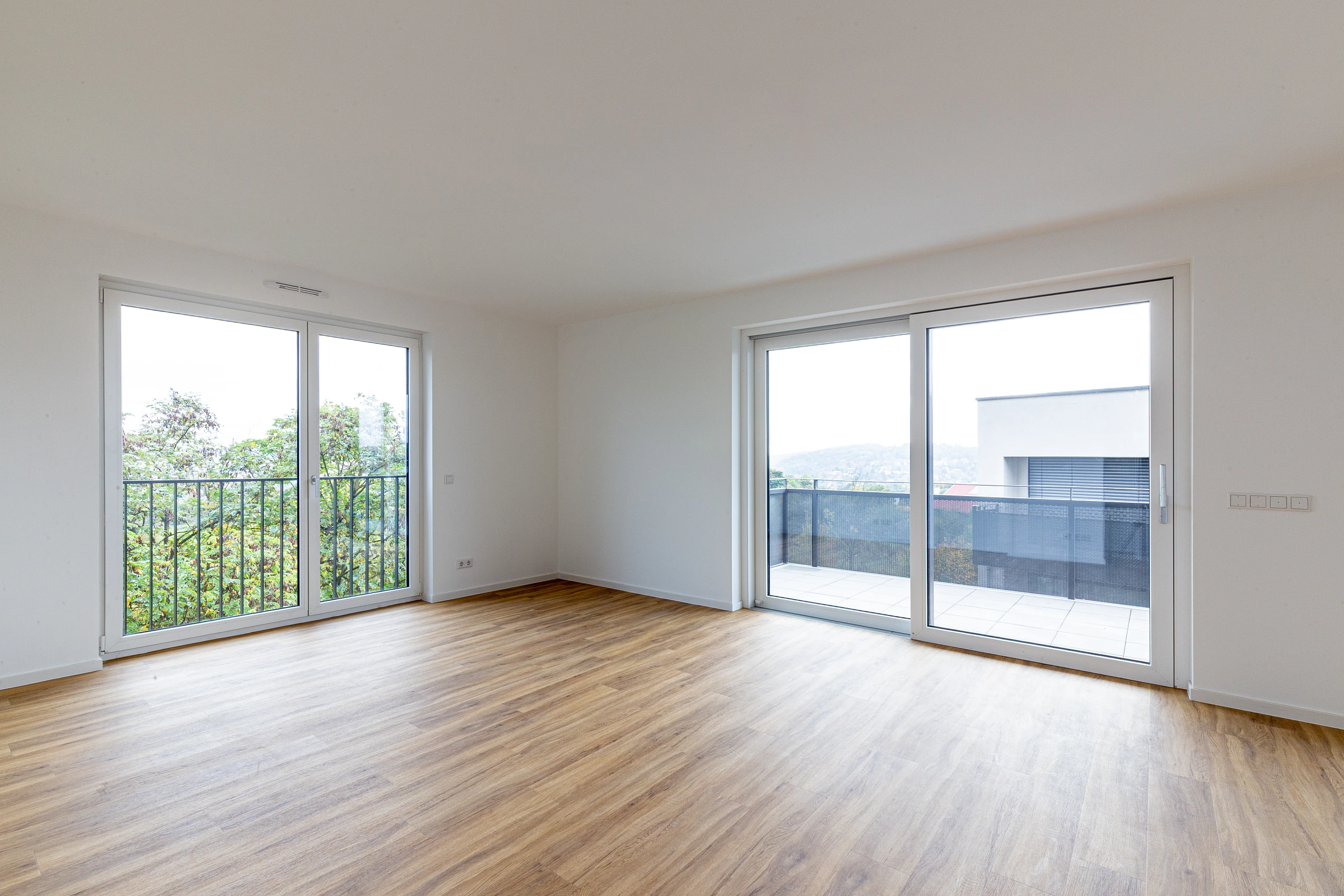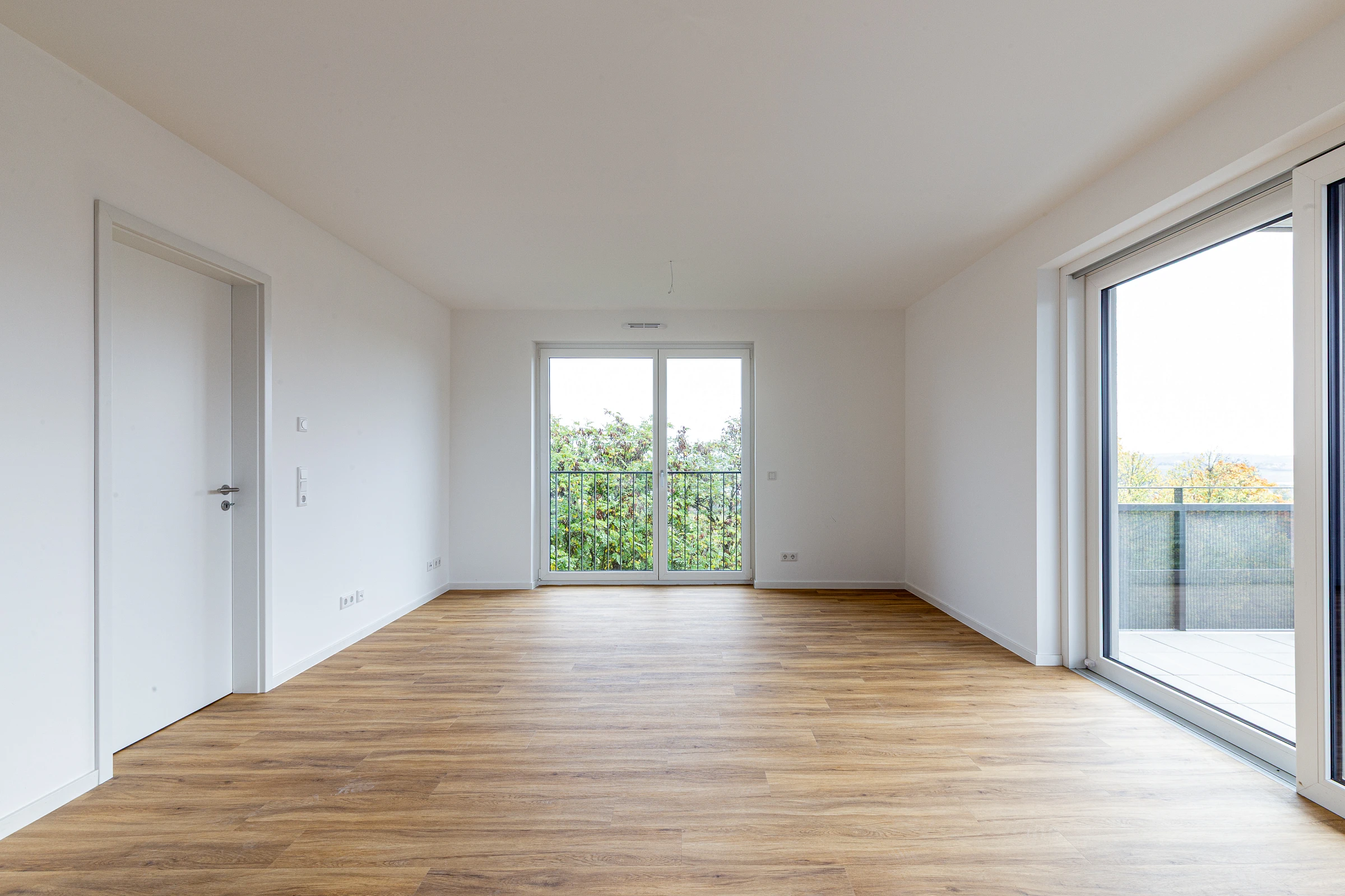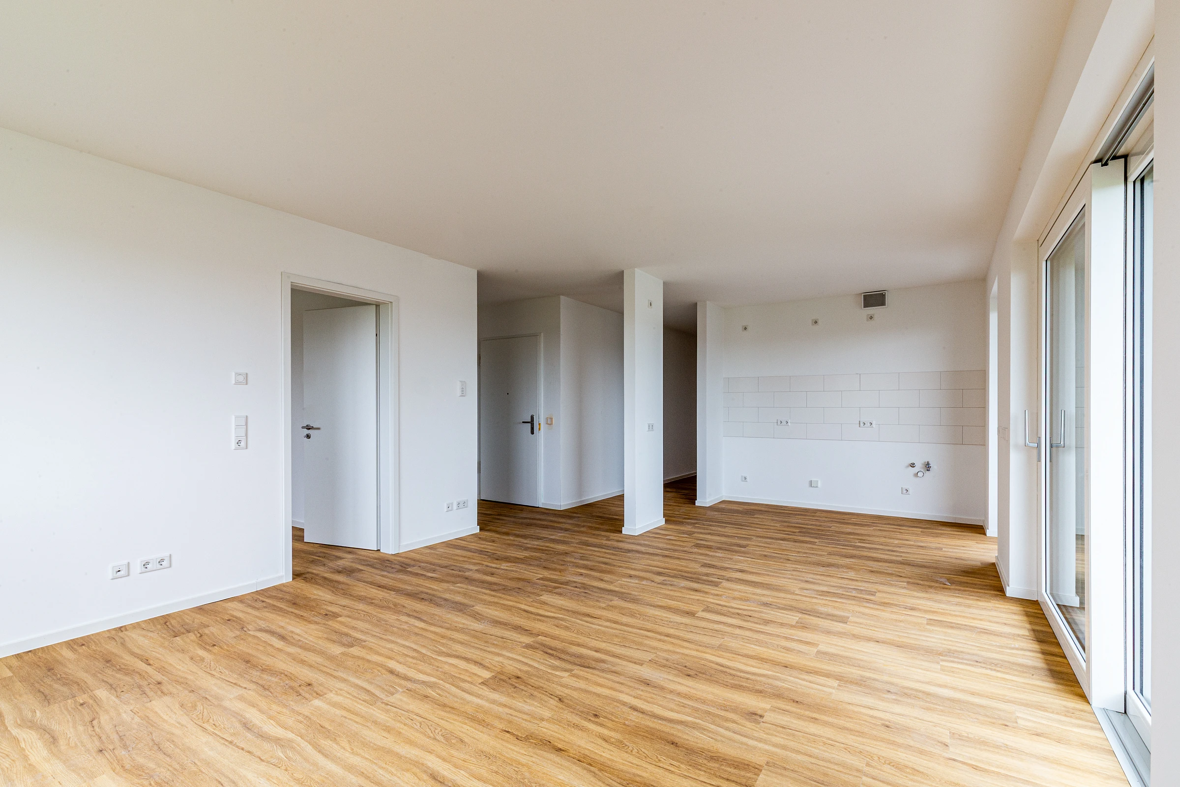 Die kompakten, wirtschaftlichen Grundrisse mit minimierten Verkehrsflächen sind allesamt barrierefrei. Sie verfügen über je einen großzügigen, über Schiebetüren zugänglichen Balkon mit Blick in die Landschaft und den neuen Stadtteil.