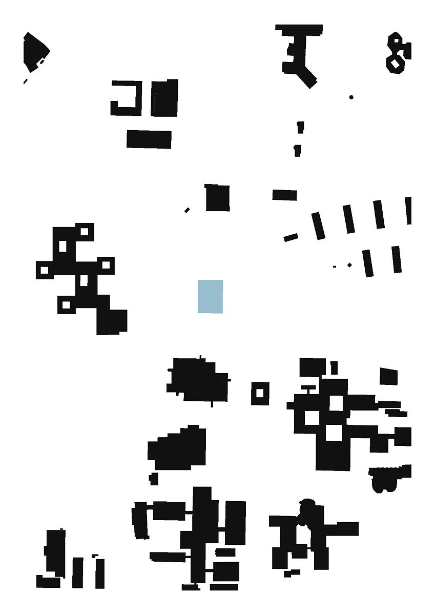 Das zentrale Hörsaal- und Seminargebäude entsteht an der Schnittstelle zwischen dem neuen, nach Norden verlaufenden Campusweg und einer Fußwegverbindung zur westlich gelegenen Fakultät für Philosophie. Der markante Grünzug bleibt als prägendes, ordnendes Element erhalten. Der Baukörper öffnet sich mit einer durchgesteckten Zugangszone und transparenten Fassadenelementen zur bestehenden, parkähnlichen Streuobstwiese.