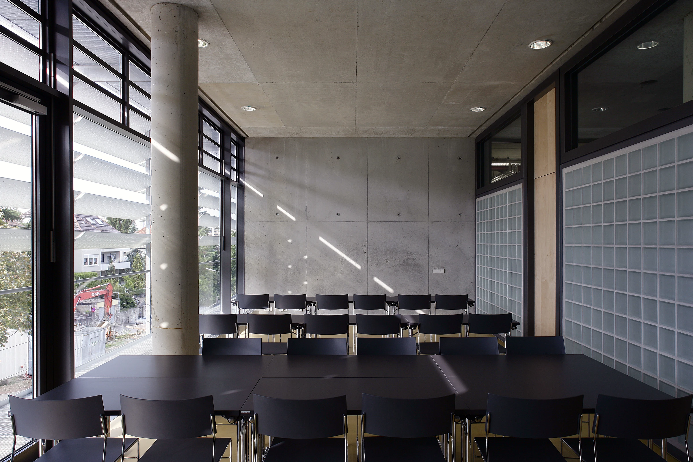 Teile des Raumprogramms, Funktions- und Technikräume, wurden großflächig unter das Gelände gelegt und oberirdisch als Park gestaltet.